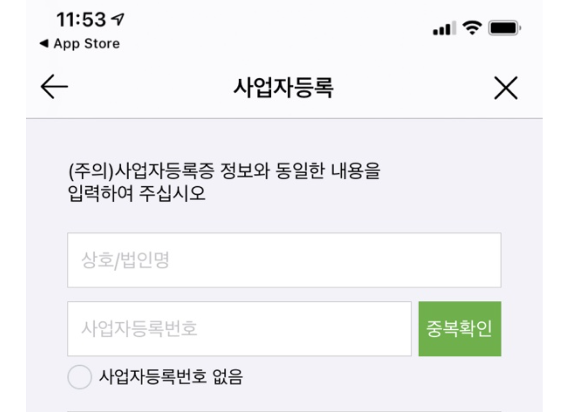 2. 설치 후 첫화면에서 사업자 신규등록을 진행해주세요.