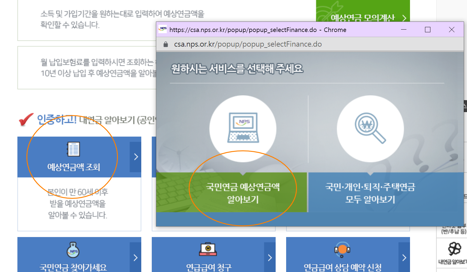 2. <예상연금액 조회> 아이콘을 클릭 후 <국민연금 예상연금액 알아보기>를 눌러주세요.
