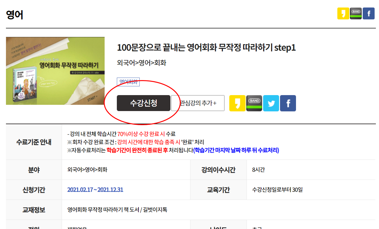 5. 원하는 강의 페이지로 들어간 후 '수강신청'을 클릭합니다.