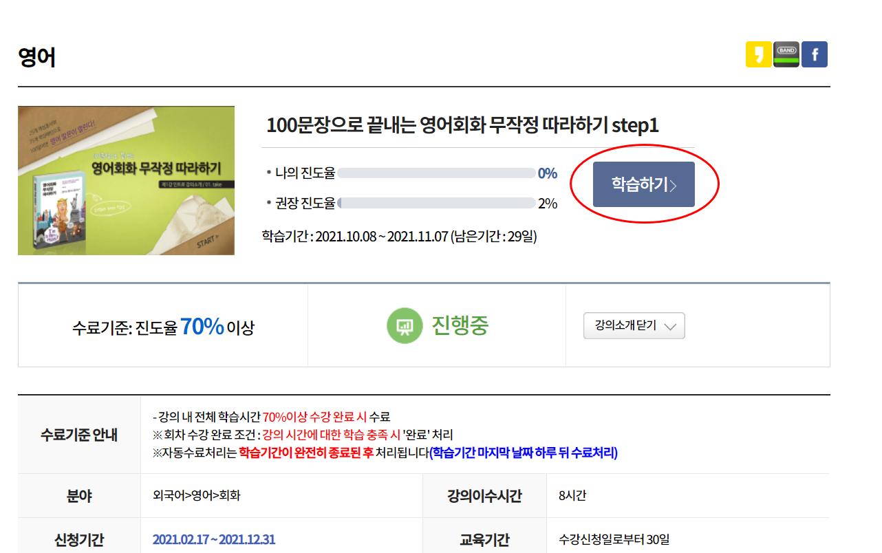 *수료기준 진도율, 신청기간, 교육기간도 함께 안내되고 있으니 수강에 참고하시기 바랍니다.