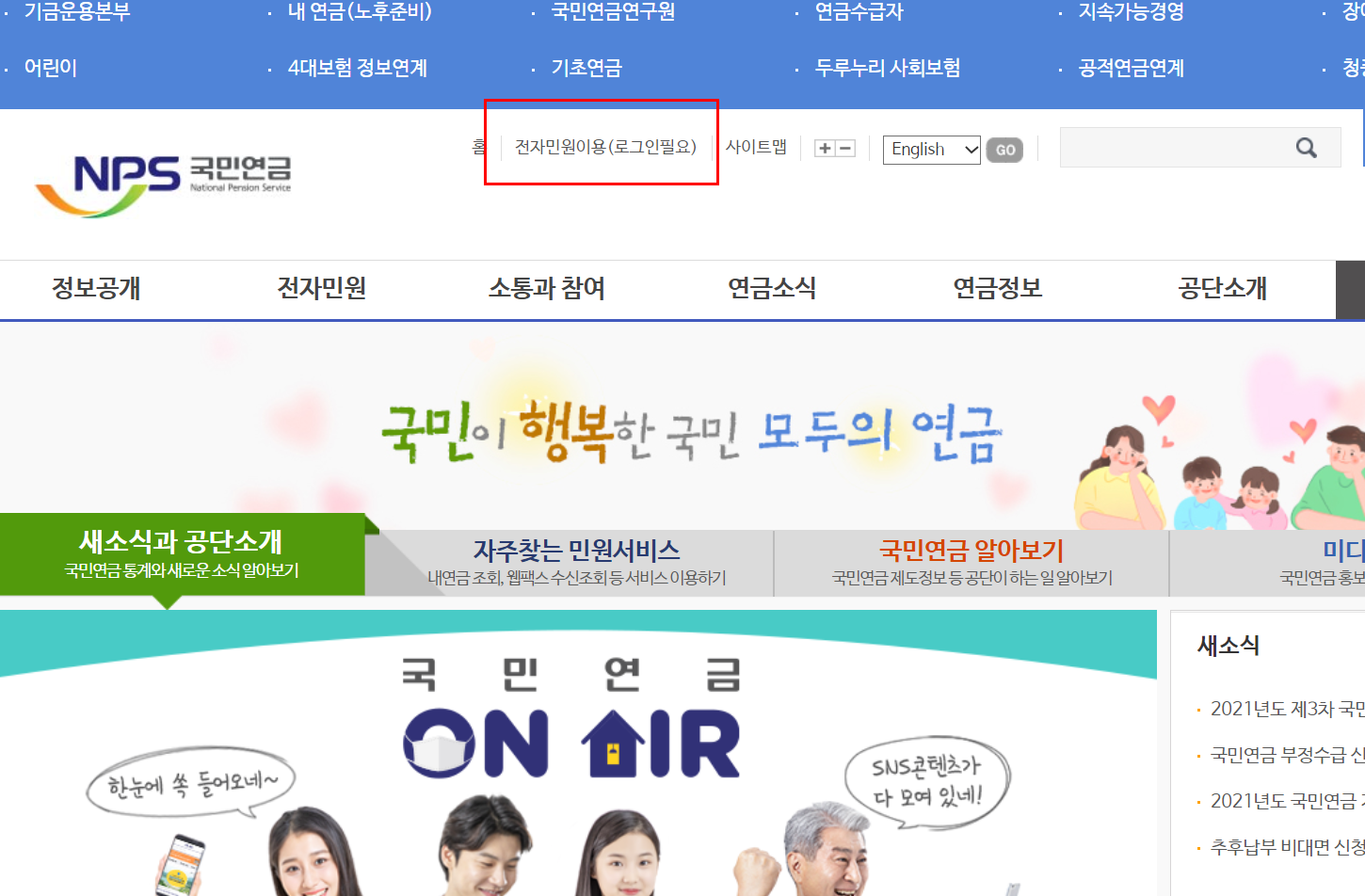 국민연금공단 바로가기