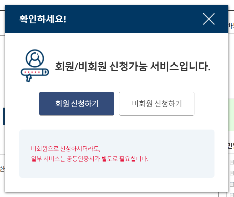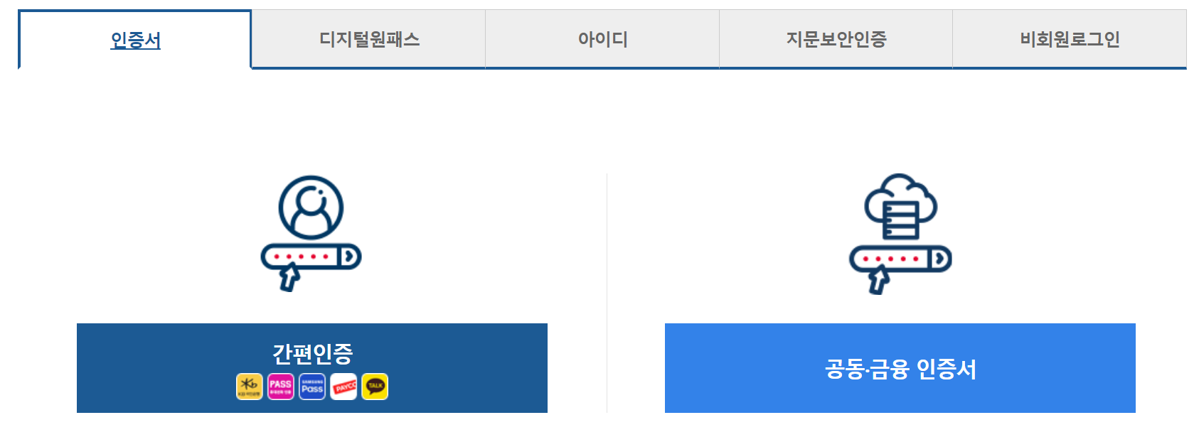 3. 로그인을 진행해주세요. (카카오톡, 패스, 페이코, 국민 / 공동인증서 등)