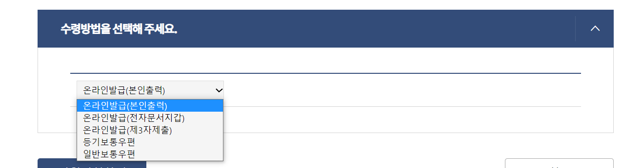 *수령방법의 경우 자체 출력 외에도 우편물로 받아보실 수 있습니다. (수수료 발생)