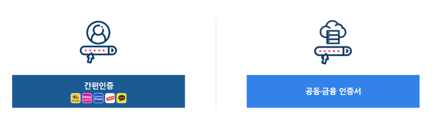 3. 로그인은 인증이 필요합니다. 공동인증서 외에도 카카오톡, 페이코, 국민은행, 삼성패스, 통신사 인증서 등을 이용할 수 있습니다.