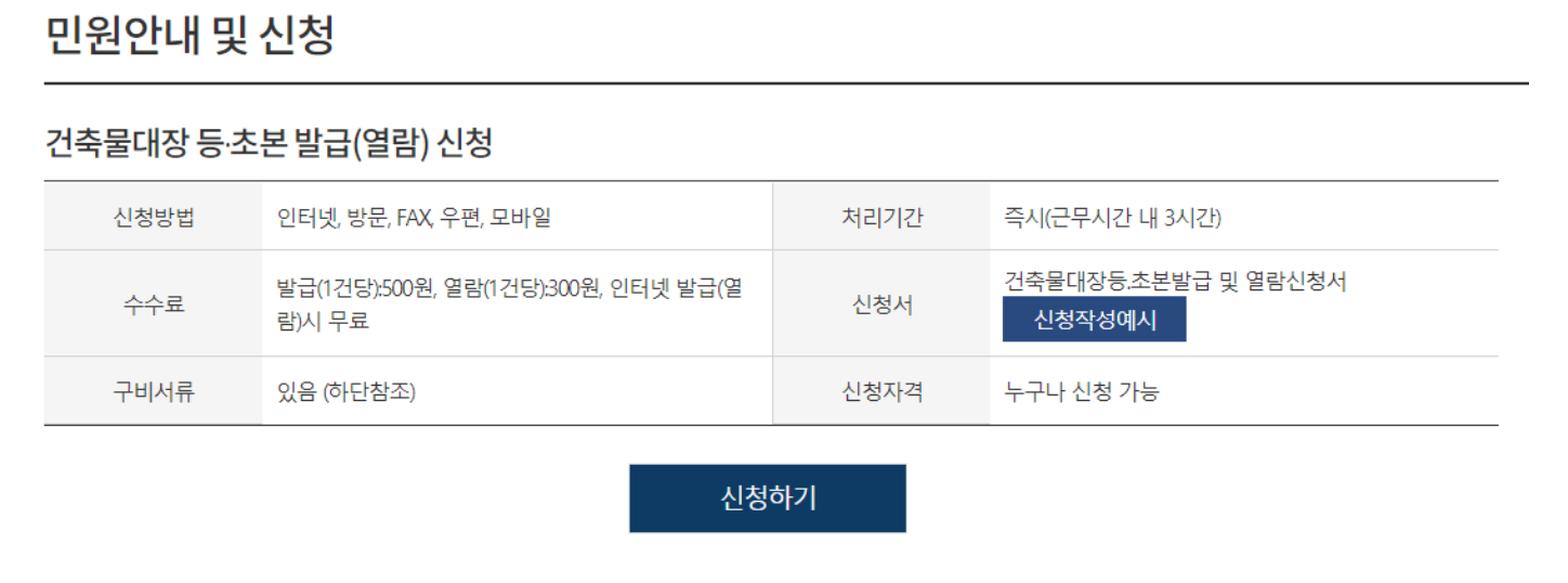정부24 건축물대장 열람 안내