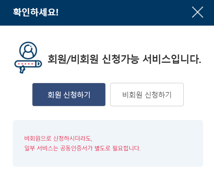 2. 신청하기를 누른 뒤 회원/비회원 로그인을 해주세요.