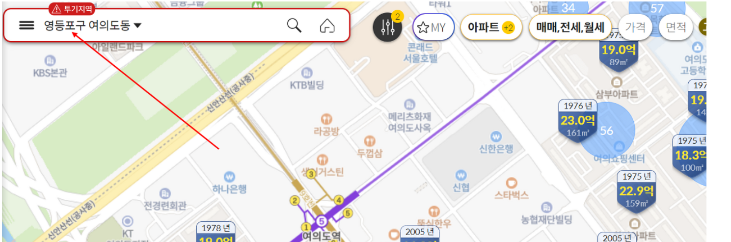 2. 지도가 나오는데요. 좌측 검색창을 클릭해 원하는 부동산 주소지를 입력해주세요.